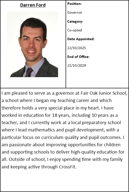 At Fair Oak Junior School, our governing body is made up of: