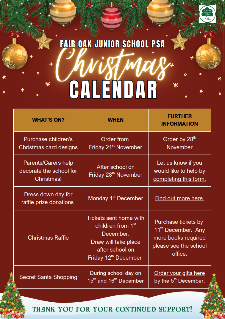 If you think you’re able to spare some extra time and would love to be a part of creating memories, please get in touch by emailing hello@fairoakjuniorpsa.co.uk or sending us a message through our Facebook page @FOJSPSA.
