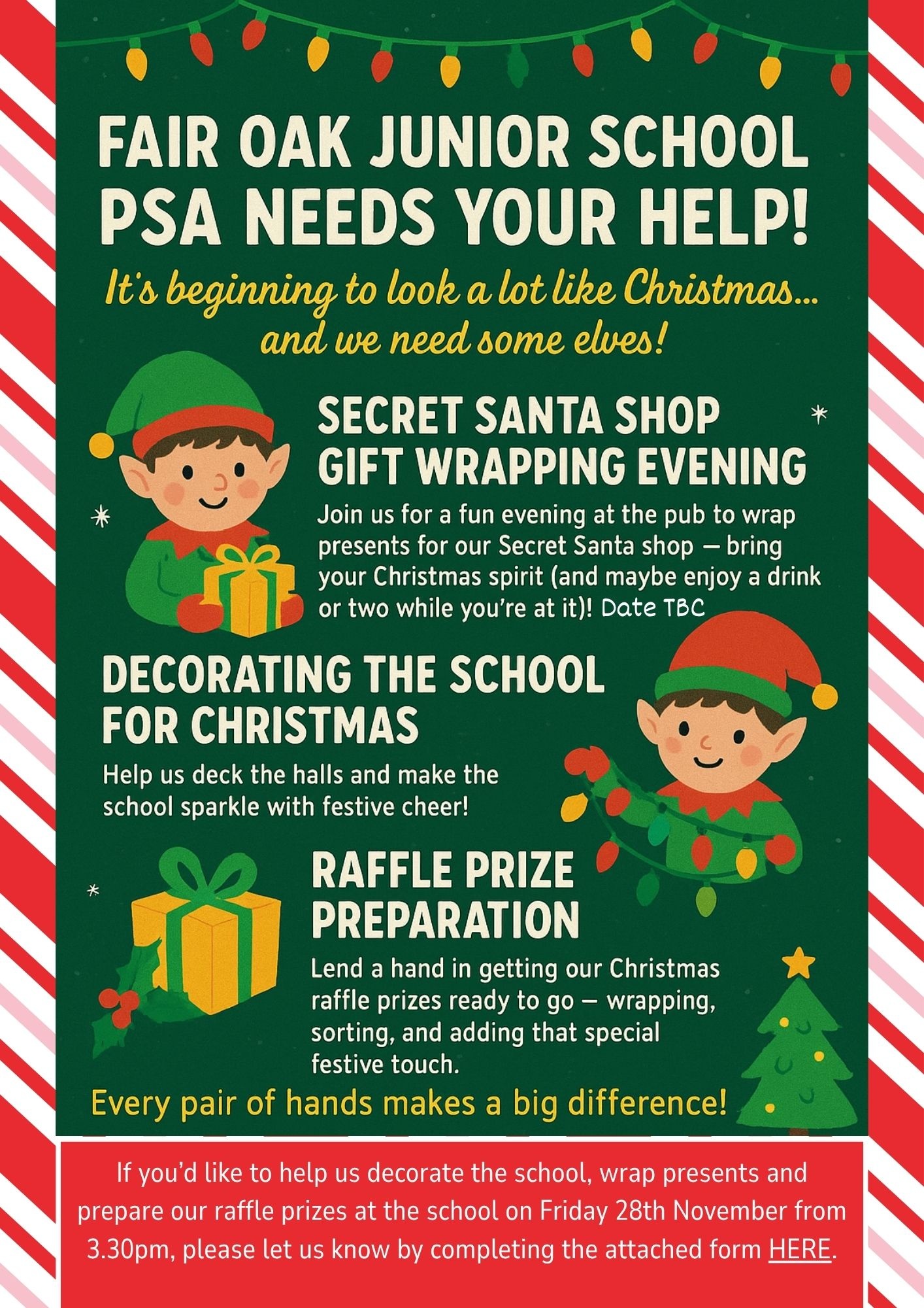 If you think you’re able to spare some extra time and would love to be a part of creating memories, please get in touch by emailing hello@fairoakjuniorpsa.co.uk or sending us a message through our Facebook page @FOJSPSA.