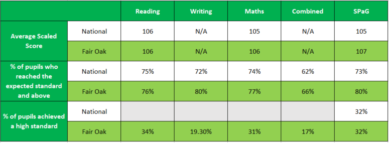 In Year 6, pupils take Standardised Assessment Tests (SATs) in Maths, Reading and Spelling, Punctuation and Grammar (SPaG). In addition, teachers will internally assess pupil's ability and overall performance in Writing.